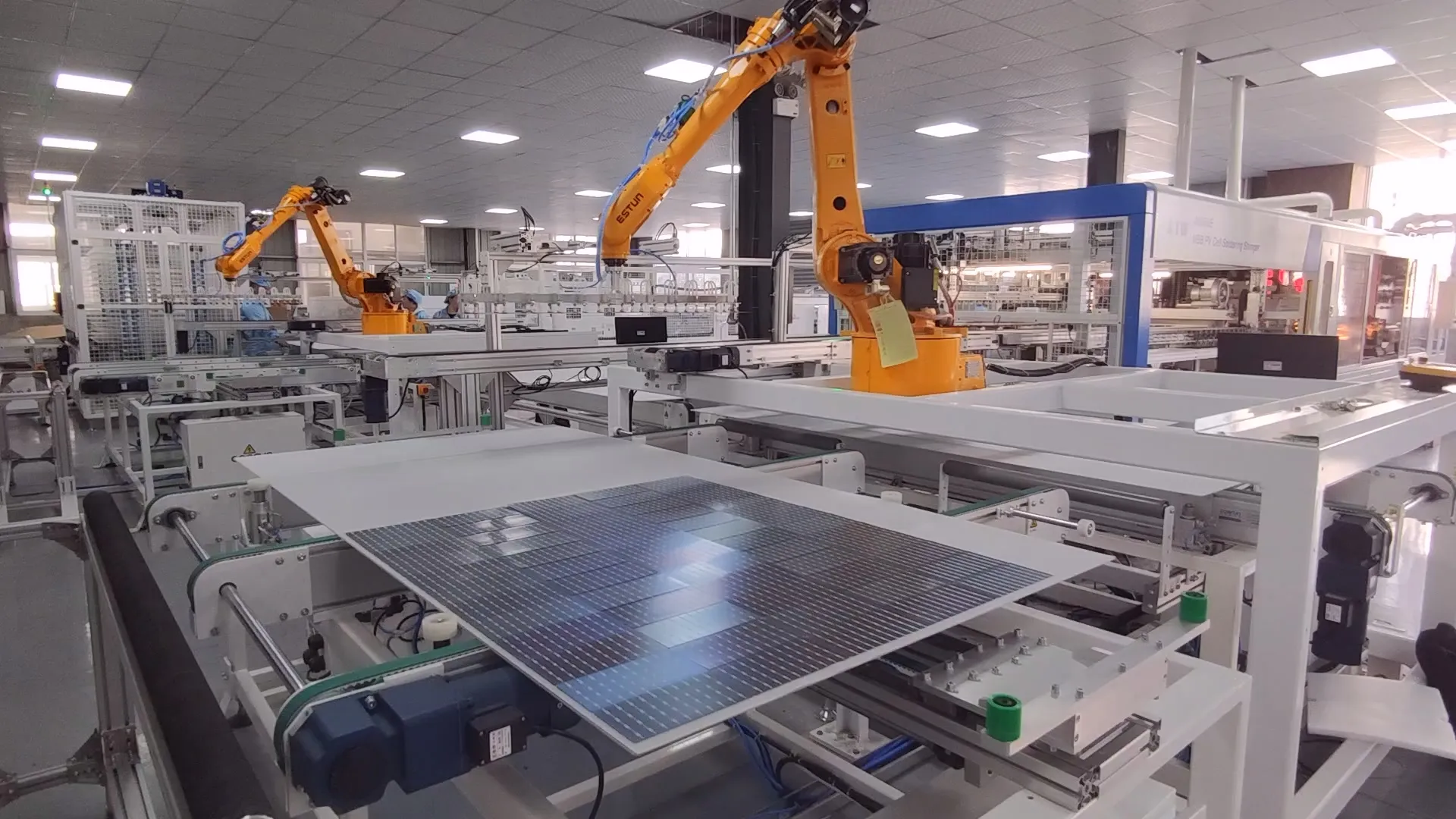 Double Glass Module AssemblyDesigned to work effectively in double glass (glass-glass) module production lines, the machine accommodates the specific requirements of frameless and bifacial solar panel manufacturing processes.